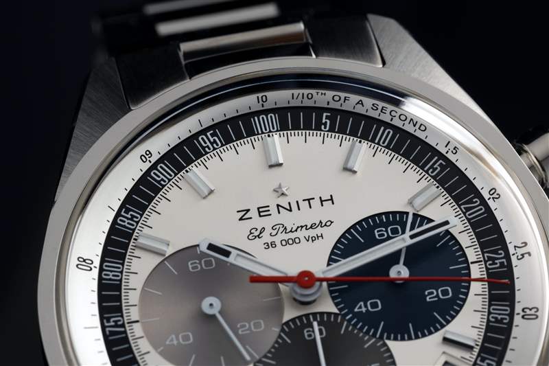 全新EL PRIMERO 3600自動腕表內(nèi)置真力時計時腕表,讓您能夠以十分之一秒的間隔追蹤經(jīng)過的時間。