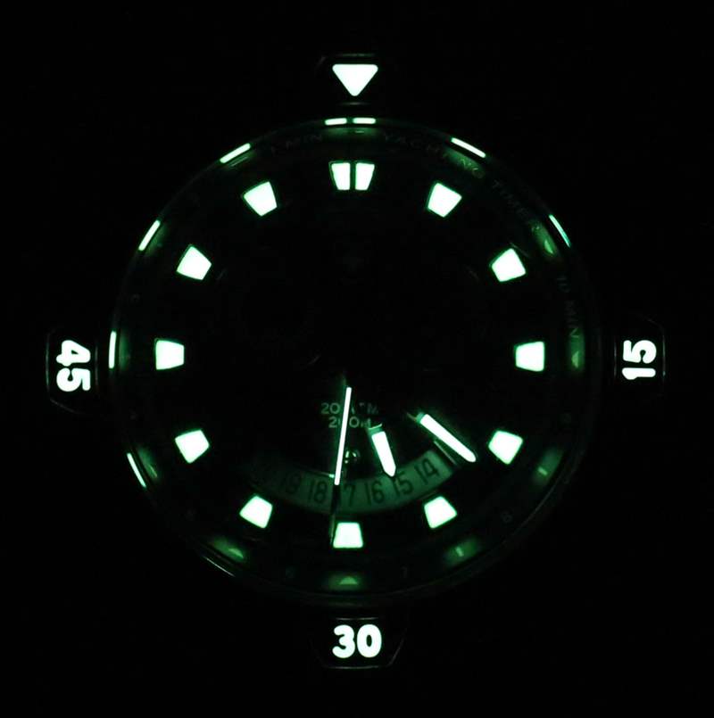 Regatta 手表因具有特殊的倒計時計時碼表而得名。帆船比賽中的船只實際上是在一個設(shè)定點開始比賽的。因此,帆船賽計時器被設(shè)計為倒計時計時器,讓船只在正確的時刻到達(dá)起點,但已經(jīng)在運(yùn)動中。帆船賽計時器是十分鐘倒計時計時碼表。這里就是這種情況,但系統(tǒng)比這復(fù)雜一點。一切都很好,但我覺得考慮到機(jī)芯的布局,表盤的美感確實受到了一些影響。