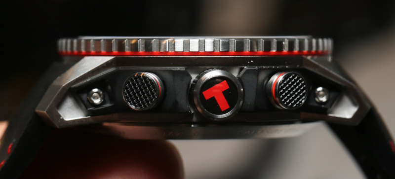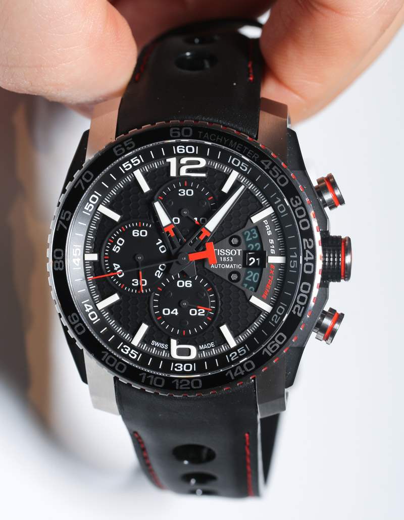 PRS 516 最酷的部分是其迷人的現(xiàn)代設(shè)計,不會將功能或?qū)嵱眯宰鳛槎裙?。精鋼表殼由拉絲和 PVD ??黑色涂層部件制成。與紅色(或黃色)混合,表殼具有光滑的現(xiàn)代建筑和大膽的外觀,看起來比實際更昂貴。天梭顯然從許多高端現(xiàn)代運動手表以及其他產(chǎn)品(如 T-Touch 系列表殼)中汲取了靈感。顏色和細節(jié)的一些最佳用途是在表冠和按鈕上。廣告留言廣告信息結(jié)束