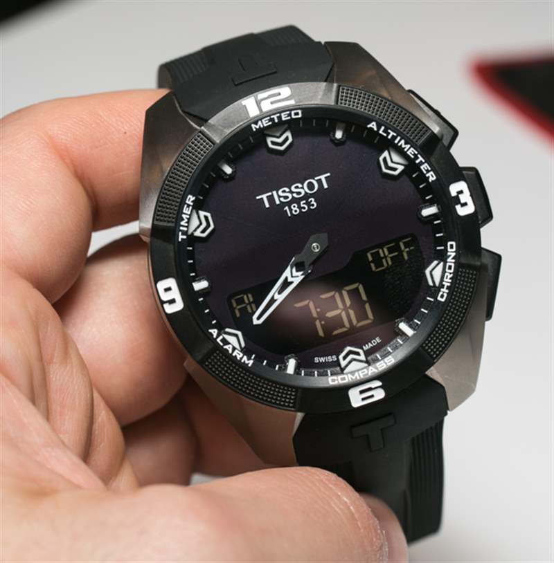 T-Touch Expert Solar 的尺寸比其他型號大,寬 45 毫米,但外殼感覺更薄。表殼本身出奇地輕巧,采用鈦金屬制成,防水深度達(dá) 100 米。雖然即使是鈦手表也感覺很輕。鈦將是大多數(shù)(如果不是全部)T-Touch Expert Solar 型號的材料。天梭進(jìn)一步承諾提供一系列表盤和鈦手鏈。我們同意,就目前而言,表盤尚未完成,但它是實(shí)際概念的真實(shí)證明。