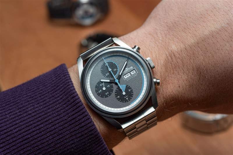 Fortis Stratoliner 的一切都采用迷人的日耳曼風格,從單個表帶鏈節(jié)到雙層表帶,都很粗壯,但并不笨重。可以肯定的是,它不是手腕上的卡地亞 Tank,但這里的目標人群顯然是在追求一款設(shè)計精致、堅固耐用的包。坦率地說,這是一款想要獲得太空認證的手表的先決條件。