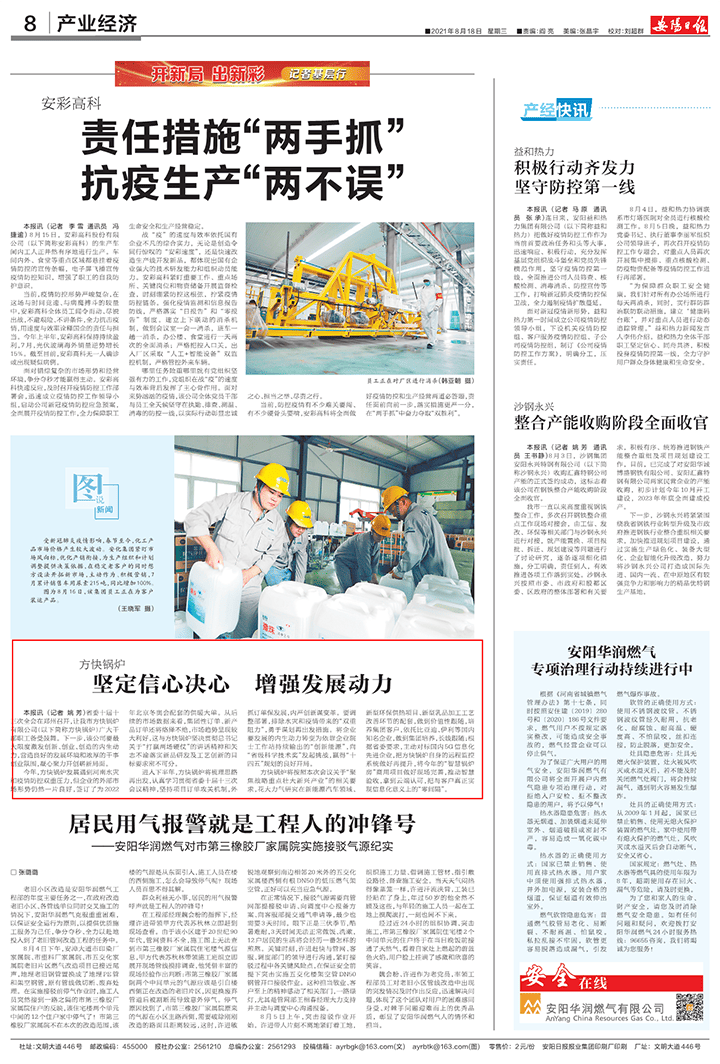今年,方快鍋爐發展遇到河南水災和疫情防控雙重壓力,但企業的外部市場形勢仍然一片良好,簽訂了為2022年北京冬奧會配套的供暖大單。從后續的市場數據來看,集團性訂單、新產品訂單還將絡繹不絕,市場趨勢呈現較大利好,這與方快鍋爐堅決貫徹總書記關于“打贏兩場硬仗”的講話精神和矢志不渝落實新品研發及工藝創新的目標要求密不可分。