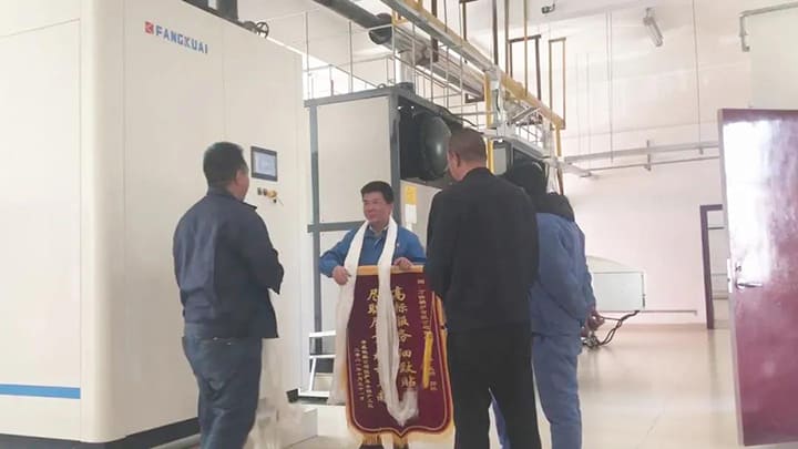 這20名司爐人員在現(xiàn)場認真聽講,王鵬操著帶有些許口音的普通話為大家做了即興講解,受到了現(xiàn)場司爐人員的一致認可。用戶工長為了表達感謝之意,特別制作了一面錦旗,并為現(xiàn)場的方快員工獻上了潔白的哈達。
