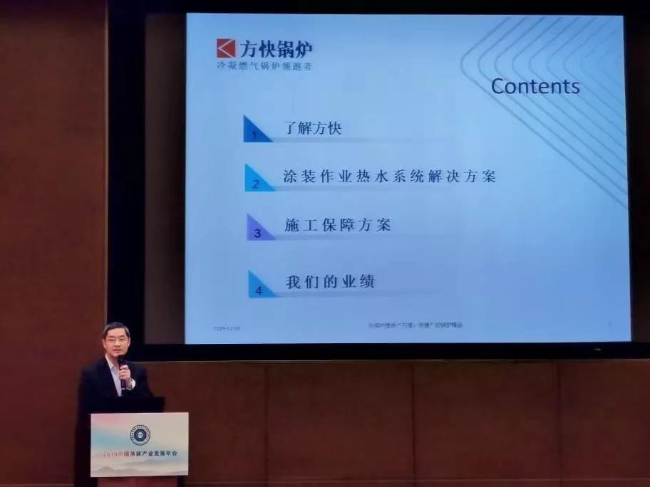 此次年會上,方快鍋爐和大家分享了《汽車配套行業生產 熱水系統解決方案》,得到了在座企業及領導嘉賓的不斷贊譽。 方快鍋爐深耕工業生產行業熱水系統解決方案,在汽車配套行業已為金龍、中通、北汽新能源、 比亞迪、威馬、風神、寶駿、吉利等知名品牌提供有效的優質服務。