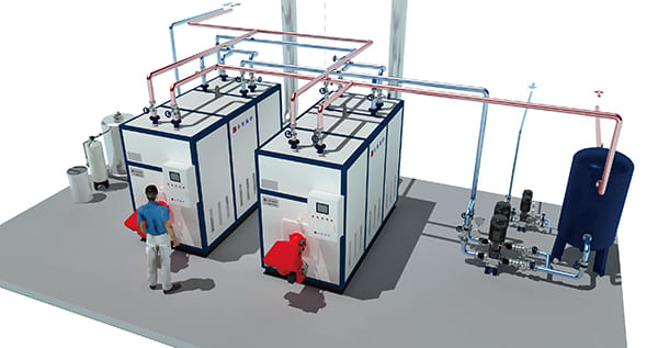 不同類型的鍋爐其工作原理也是不同的。小型鍋爐(熱水系統)主要有電鍋爐(電熱水鍋爐)、立式燃氣鍋爐等;大型鍋爐(小區、醫院、公司等集中供暖鍋爐)主要有燃氣鍋爐、蒸汽鍋爐等。