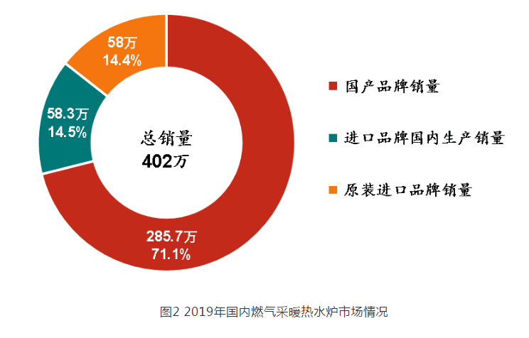 據(jù)統(tǒng)計(jì), 2019 年中國(guó)市場(chǎng)燃?xì)獠膳療崴疇t總銷量為 402 萬臺(tái),相比 2018 年( 320 萬臺(tái))增加了 82 萬臺(tái),增幅 25.6% 。其中,國(guó)產(chǎn)品牌國(guó)內(nèi)銷量為 285.7 萬臺(tái),占全年總銷量的 71.1% ,相比 2018 年( 214 萬臺(tái))增幅 33.5% ;進(jìn)口品牌在國(guó)內(nèi)生產(chǎn)的銷量為 58.3 萬臺(tái),占全年總銷量的 14.5% ,相比 2018 年( 42 萬臺(tái))增幅 38.8% ;原裝進(jìn)口品牌的銷量為 58 萬臺(tái),占全年總銷量的 14.4% ,相比 2018 年( 64 萬臺(tái))降幅 9.4% 。
